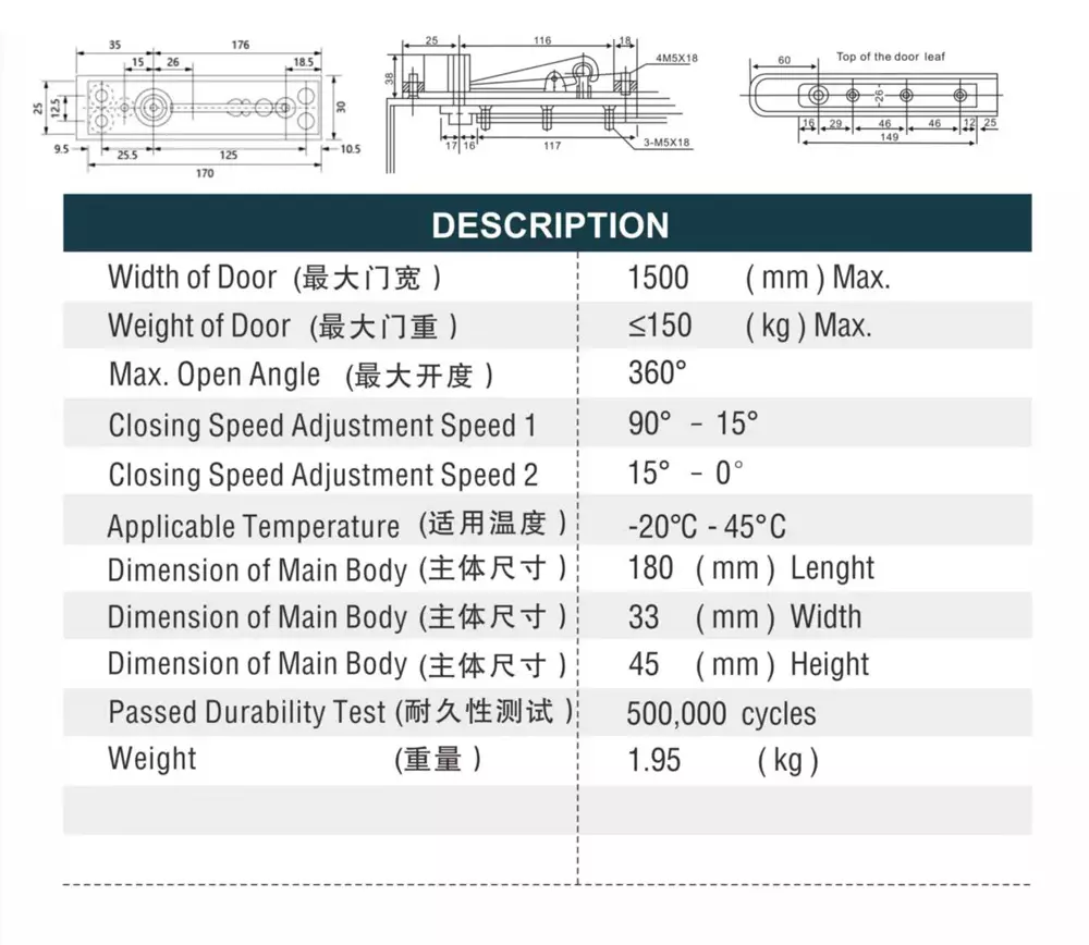 Compact structure, hidden design, silent closure, anti-pinch protection, metal material, corrosion-resistant, flexible adjustment function, and easy installation