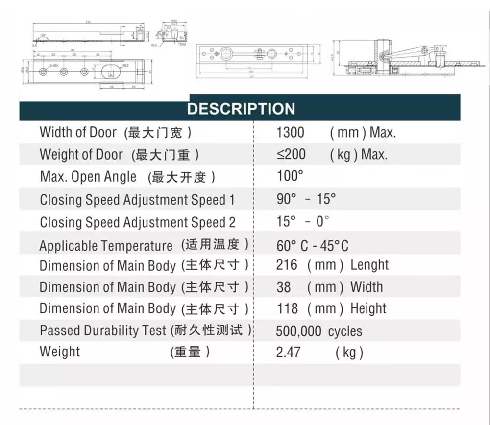 Compact structure, hidden design, silent closure, anti-pinch protection, metal material, corrosion-resistant, flexible adjustment function, and easy installation